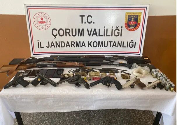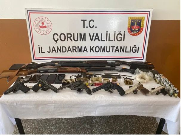 Çorum İl Jandarma Komutanlığı ekipleri tarafından silah kaçakçılığı ile mücadele kapsamında yürütülen çalışmalar doğrultusunda, 13 Temmuz 2021 günü Ortaköy ilçesinde (4) ayrı adreste ve Yozgat Aydıncık ilçesi Kazankaya köyünde de (1) şüpheli şahsa ait adreste adli makamlardan alınan karar gereği arama yapıldı.