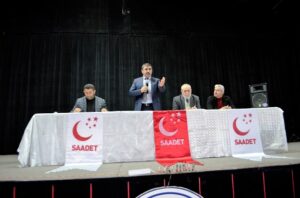 Konuşmalarını gerçekleştirmek üzere kürüsüye gelen Saadet Partisi Genel Merkez Disiplin Kurulu üyesi Ali Okutan; kıymetli Alaca’lı kardeşlerim saygıdeğer misafirler hepinizi hürmet ve muhabbetle selamalarım.