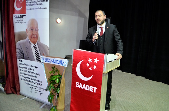 Daha sonra konuşmalarını gerçekleştirmek üzere kürsüye gelen Saadet Partisi Çorum İl Başkanı Faruk Cıdık ; Bugün Alaca’mızdayız adım adım heyacanımızı yenilemek daha verimli istenen hedeflere ulaşmak, milli görüş prensiplerini önce kendimiz ve daha sonra yurdumuza ve tüm dünya saadetine kavuşturulması adına kongremizi gerçekleştiriyoruz.