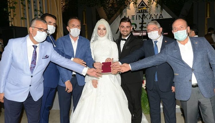 Koronavirüs tedbirleri kapsamında konukların salona maskeli şekilde alındığı düğünde genç çiftlerin nikahı protokol üyelerinin huzurunda Belediye Başkanı Dr. Halil İbrahim Aşgın tarafından kıyıldı.