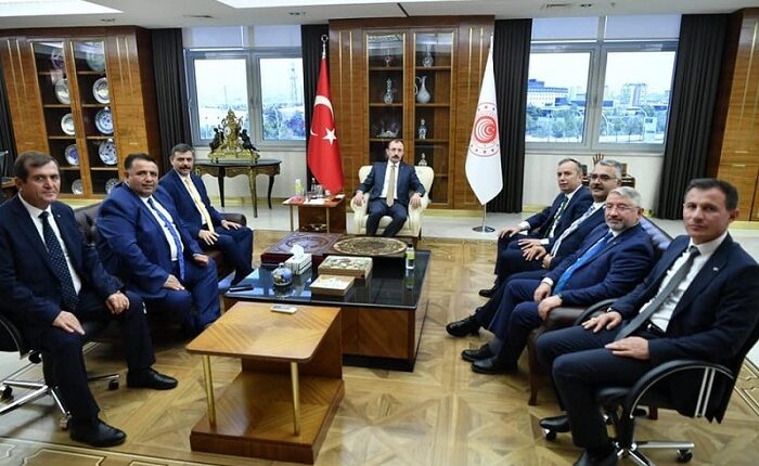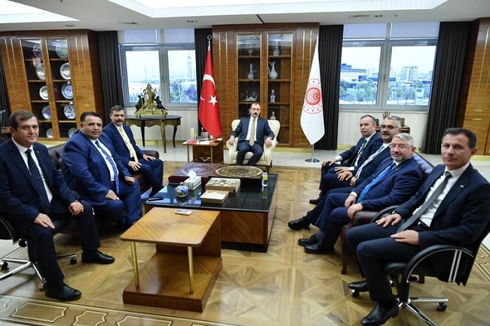 Ticaret Bakanı Mehmet Muş’u ziyaret ettiler ve hayırlı olsun ziyareti ile birlikte Çorum’a davet ettiler.