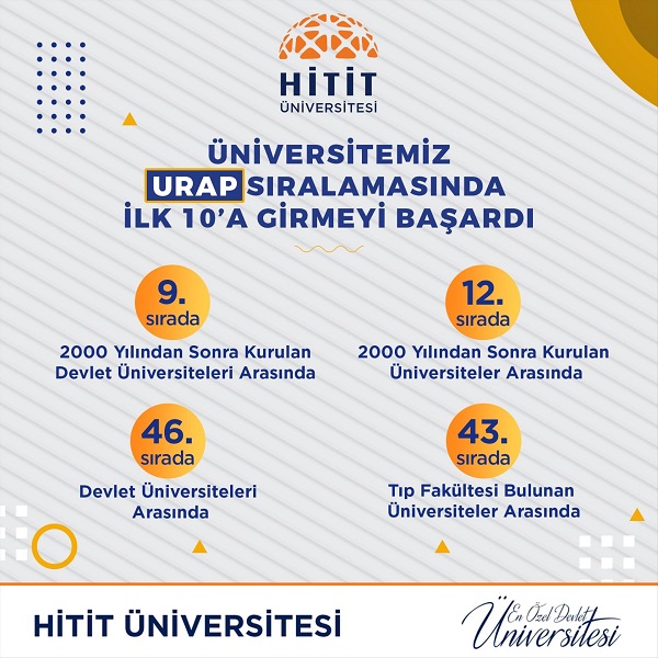 Hitit Üniversitesi, akademik performansa göre belirlenen URAP listesinde, 2000 yılından sonra kurulan devlet üniversiteleri arasında 9’uncu oldu.