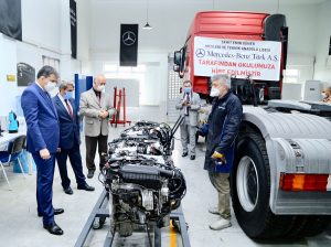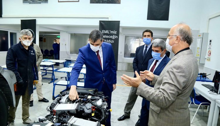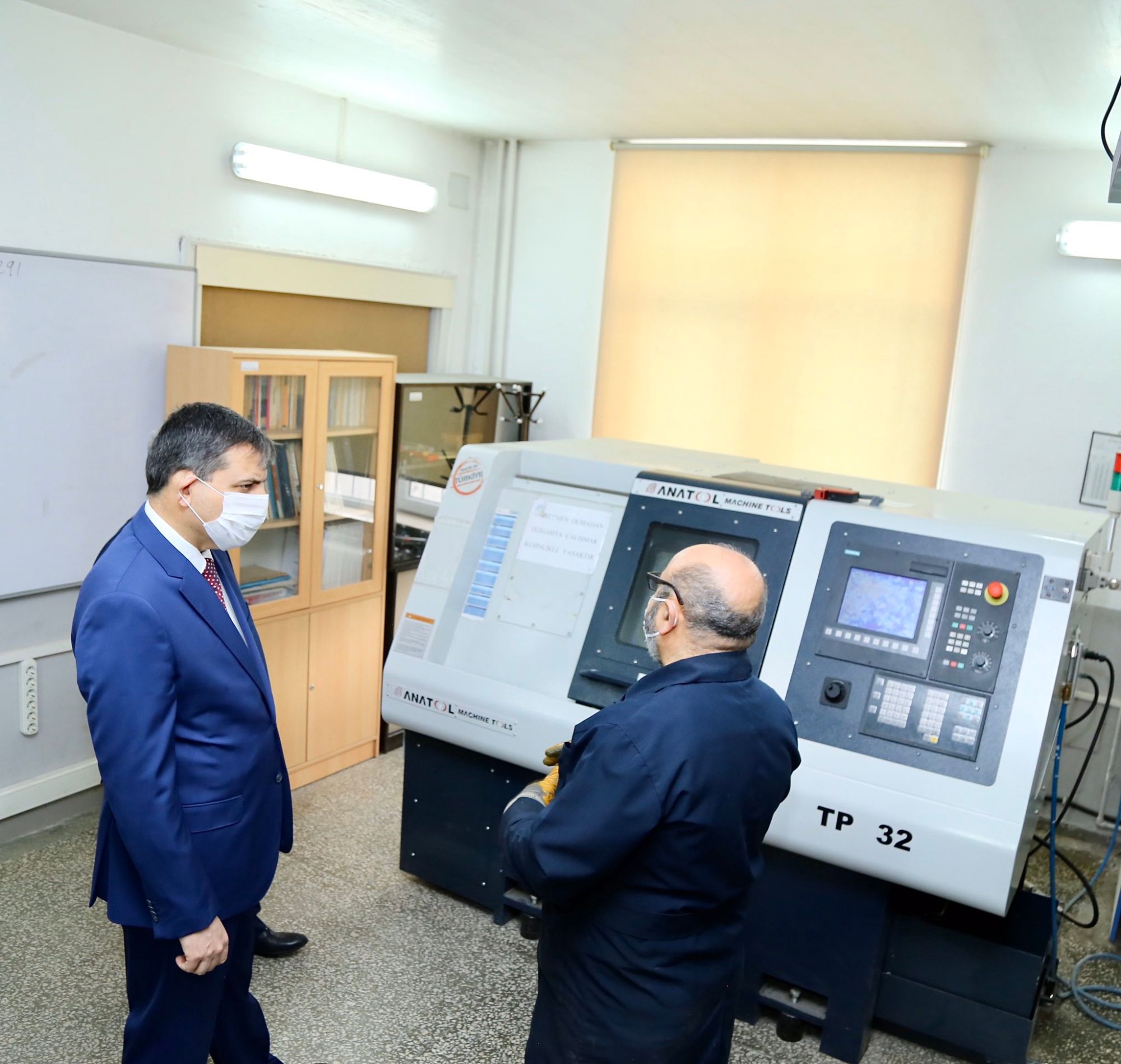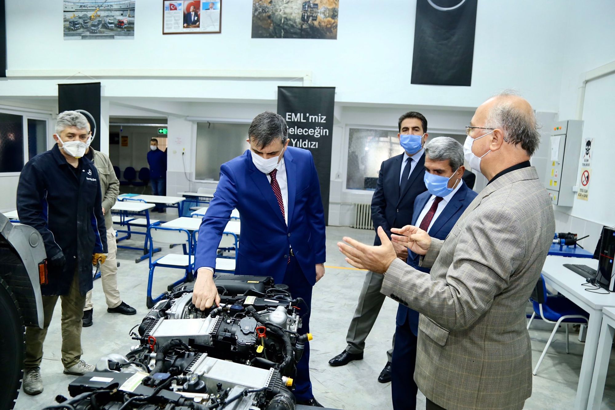 Vali Mustafa Çiftçi, İl Milli Eğitim Müdürü Yakup Sarı, Şehit Emin Güner Mesleki ve Teknik Anadolu Lisesi Proje Okulu’nda motor ve metal atölyelerini de ziyaret etti. Motor atölyesinde Mercedes-Benz Türk A.Ş. tarafından okula hibe edilen kamyon ve malzemeleri, metal atölyesinde yeni alınan cihazları inceledi.