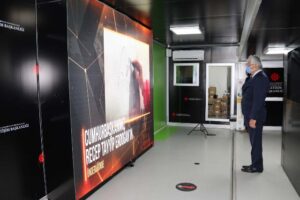 Vali Yardımcısı Dr. Hakan Kubalı Hürriyet Meydanı’nda kurulan, Cumhurbaşkanlığı İletişim Başkanlığı tarafından hazırlanan Türkiye’nin milli, tarihi, kültürel, bilimsel ve teknolojik zenginliklerinin dijital sunumlarla anlatıldığı Dijital Tır’ı ziyaret etti. Dijital ortamda gerçekleştirilen holografik sunucu, harekete duyarlı ekran, 3 boyutlu sanal kutu, yeşil perde ve sihirli ayna hakkında görevliden bilgi alarak etkinliklere katıldı.